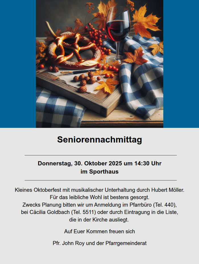 Sprechen Sie uns an. Melden Sie sich jetzt in unserem Pfarrbüro. Jede*r Interessierte und die/der bereit ist, sich einzubringen ist herzlich willkommen. Wir freuen uns auf Sie!